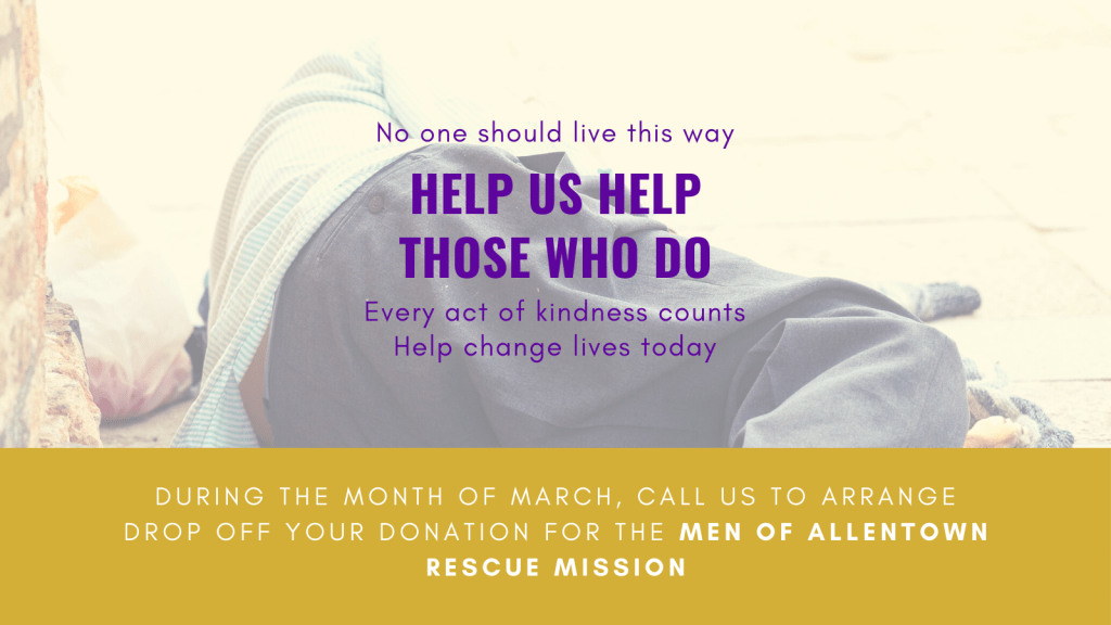 For the month of March, we invite you to be a part of what God is doing through Allentown Rescue Mission. Below is a note from Stuart Smith the CEO of Allentown Rescue Mission.