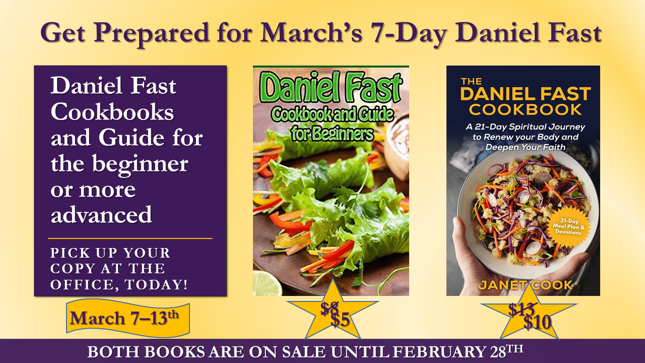 Sunday, February the 14th is not only Valentine’s Day, it is the day before Pastor Ray’s Birthday and 3 weeks before the first 7-Day Daniel Fast of the year.